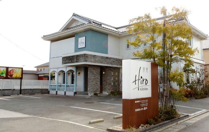 白にサックスブルーが目をひく外観がお洒落な洋食店