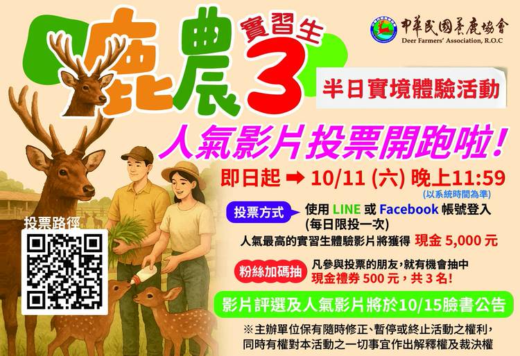 🥰2024鹿農實習生半日實境體驗營第二發!!🥰 🦌台中新社兆民養鹿場精實演出~ 👨🌾👨🌾👨🌾由台大、興大、東海三位動科系同學合體的團隊 👉帶著比盛夏太陽還要大的熱情,盡情體驗 🚜體驗搭鐵牛之旅,新奇又有趣! 🙆感謝鹿場老闆鉅細靡遺的講解👍 💁♂每個步驟都有深入的說明及示範💪 😘同學們直呼鹿農體驗真是太棒了!! 🤘希望未來還可以再訪~ 更感謝老闆娘準備...