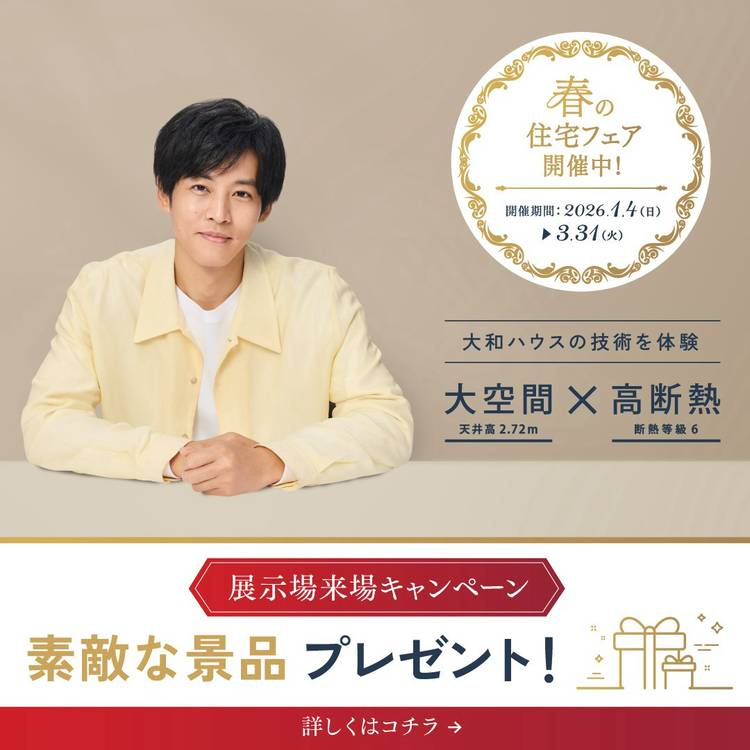\ 明けましておめでとうございます🎍/ 26年1月4日(日)~3月31日(火)の期間、春の住宅フェア開催中(!) 広さも、快適さも、安心も。 全部実現できる大和ハウスの技術を体験しよう(sparkle) ■□ 展示場来場キャンペーン □■ ①住宅展示場(東京都23区・大阪府以外の展示場) 【条件】当社ホームページより来場予約の上、来場。 さらに、次回の商談予約・実施。 ...