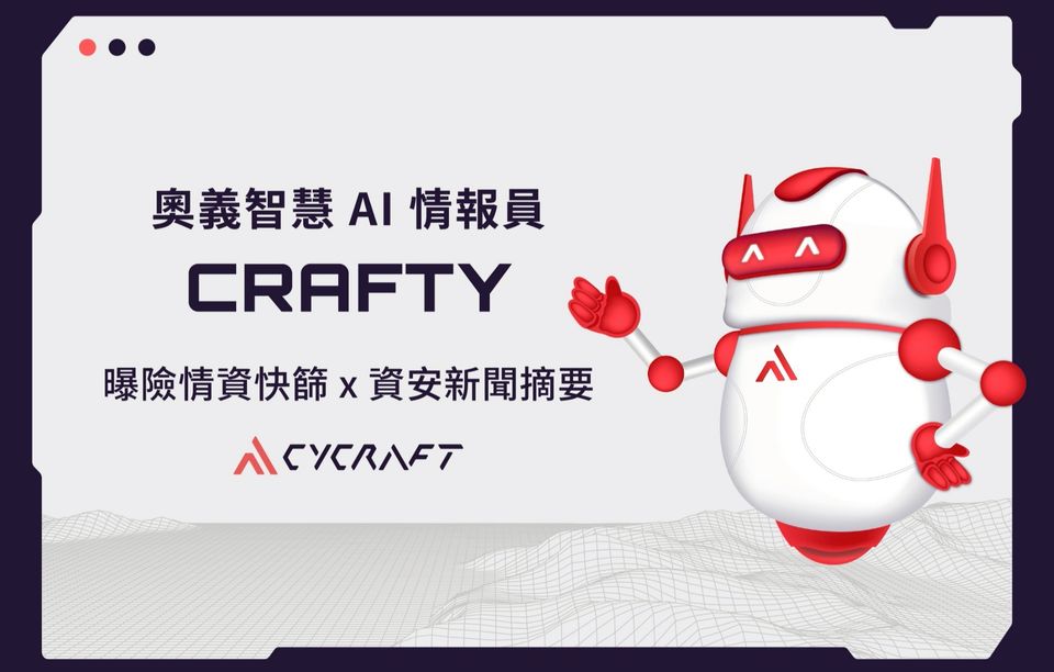 👋 您好,我是奧義智慧 AI 情報員 Crafty!我是奧義智慧研發的對話機器人,提供免費曝險情資快篩服務🩺,與資安新聞摘要服務📰。
