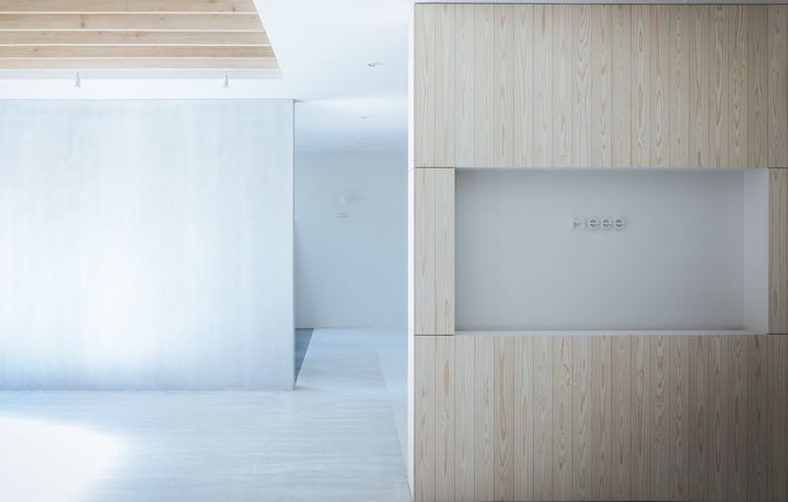 photo studio Meeeは三重県桑名市長島町にあります。白を基調とした木とモルタルテイストで、常に自然光が差し込み朝・昼・夕、刻一刻と光で変化する表情。
