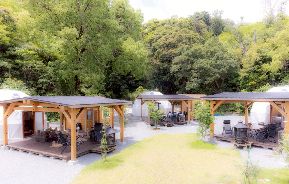 周辺には四国の自然がそのまま残った海辺の森で小鳥がさえずるのどかな場所です。この環境でグラマラスなキャンプをお楽しみ頂けます。