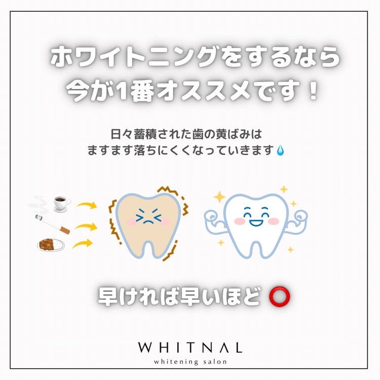 【まもなく終了‼️】 .・*・.・*・.・*・.・*・..・*・.・* 🌻OPEN記念🌻 《初回限定》美容ホワイトニング \ 1,980円(税込) / .・*・.・*・.・*・.・*・..・*・.・* 当サロンは美容ホワイトニング・医療ホワイトニングの2種類から選択可能です◎ 【美容ホワイトニング】 歯の表面に付着した着色汚れを、一時的に化学反応を起こして汚れを浮かせて綺麗にし、歯本来...