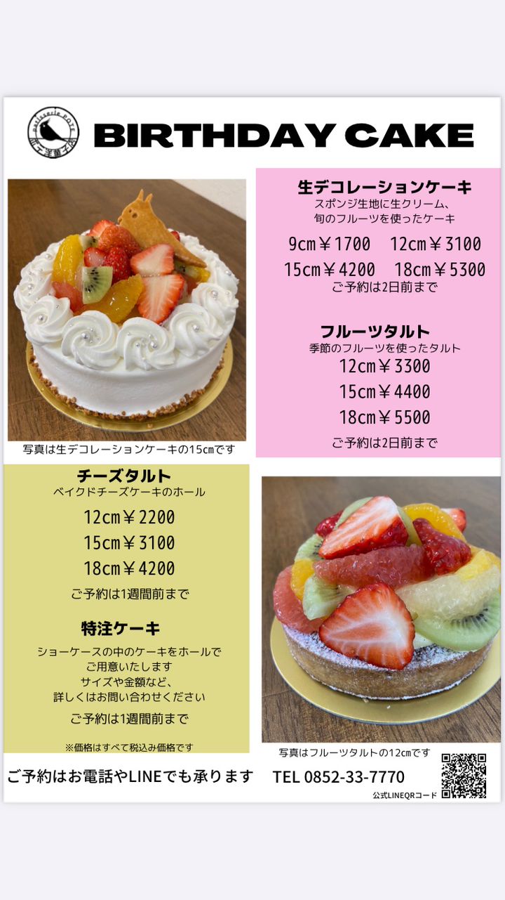 こちらのアカウントでケーキのご予約ができます