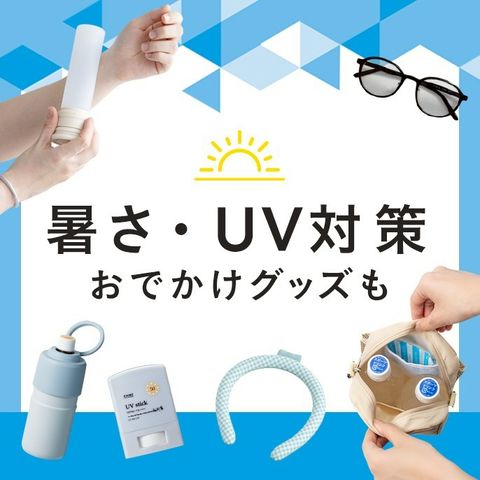 おでかけ時に快適に過ごすための日傘や帽子日傘・帽子・冷感グッズなど、夏に揃えておきたい暑さ・熱中症・UV対策アイテムをご紹介します。