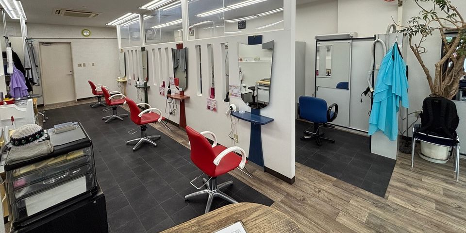 Aご来店 → 受付 → 券売機でチケット購入 → ご案内 → カウンセリング → カット(または各メニュー) の流れです。