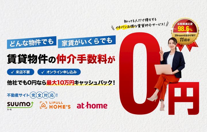 A仲介手数料0円~最大39,000円はサービスの一つにすぎません。 経験豊富な営業マンが親切丁寧な仲介業務をお約束いたします。