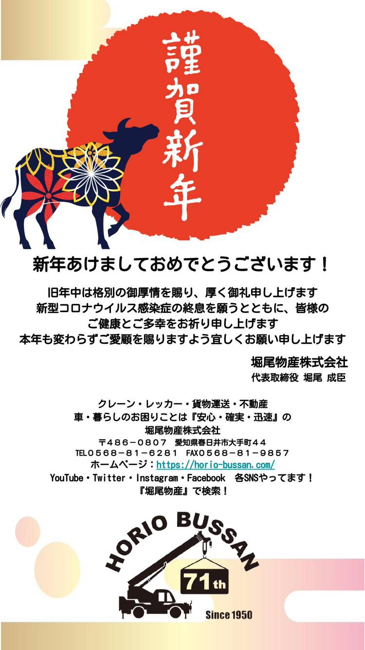 【2020年1年間ありがとうございました】 激動の2020年もあと6時間少々となりました。 1年間ありがとうございました 来年は各部門さらなるサービスの向上を目指すと共に、 SNSをフォローしていただいている皆様にさらに堀尾物産を知っていただけるよう、 楽しんでいただけるよう精進して参りますので宜しくお願いいたします
