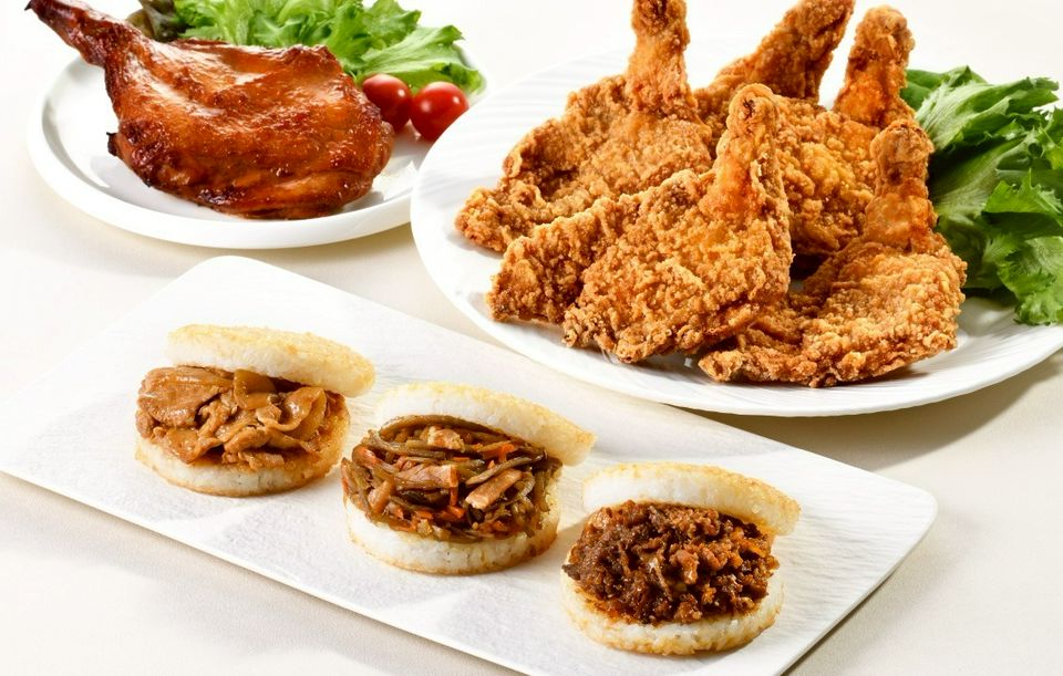 焼肉と豚生姜焼き、きんぴらの3つのライスバーガーが比べて楽しめる〈食べ比べセット〉です