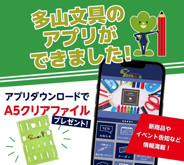 広島の文房具専門店、多山文具の公式アカウントです。 広島と高松に5店舗展開しております。 多山文具各店の新情報、イベント情報など お得な情報をお届けします。 ◎本通ヒルズ店 広島市中区本通 本通ヒルズ3階 082-248-2221 ◎緑井天満屋店 緑井天満屋店3F 082-876-5308 ◎フジグラン東広島店 フジグラン東広島2F 082-493-6670 ◎アルパーク店 アルパーク東棟3F 082-279-6020 ◎ゆめタウン高松店 ゆめタウン高松2F 087-869-7611 お近くの店舗へお気軽にお問い合わせください。 皆様のご来店をお待ちしております!