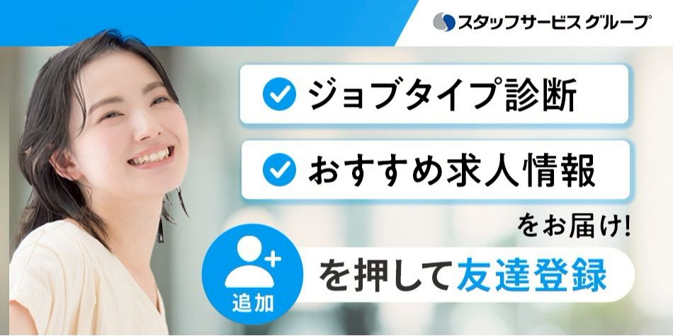 あなたにあったお仕事情報がLINEに届きます!気になる方は画面上部の「+追加」から友だち登録!