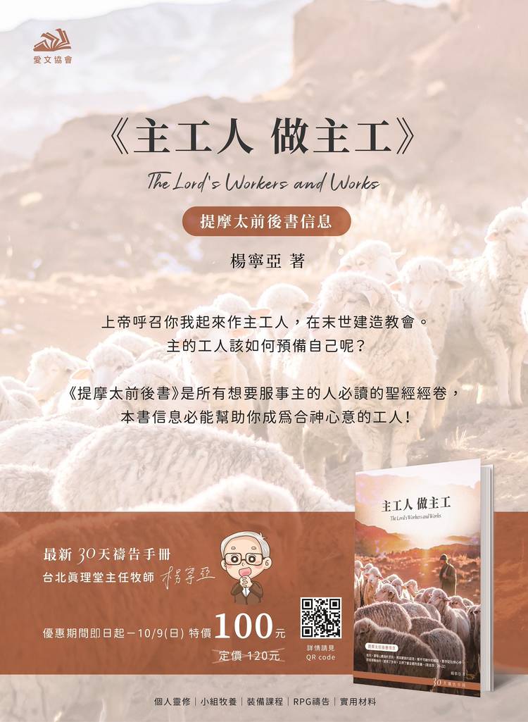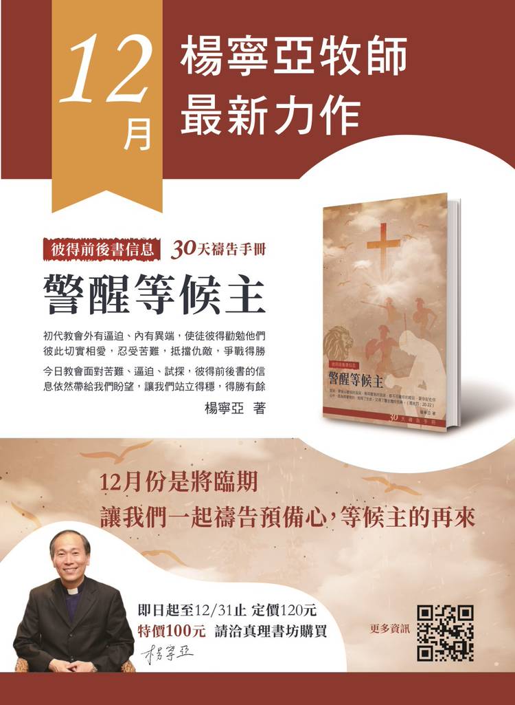 新書上市🎉 楊寧亞牧師著《30天禱告手冊-在基督裡的豐盛》(歌羅西書信息)已出版 ✨ ✍️內容簡介: 面對該選哪間學校、自己適合怎麼樣的工作、該跟誰結婚等等的問題,我們該如何尋求上帝的旨意? 歌羅西書告訴我們,上帝的旨意只有一個!在基督裡尋求這些問題的答案,人生會越走越豐盛,超過我們所求所想! ✅定價120元,優惠期間即日起-3/12於真理書坊購買 每本優惠價 $100元‼️ 👀線上...