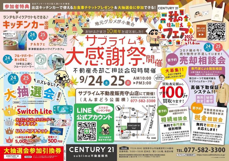 サブライム大感謝祭開催のお知らせ おかげさまで弊社は10周年を迎えることができました 日頃の感謝を込めて、 9月24(土)&25(日)の2日間限定!!の 『サブライム大感謝祭』を開催いたします。 時間:10:00~15:00 場所:サブライムホーム(えんまどう公園横) 詳しくはこちらから ↓↓↓ https://www.sublimehome.co.jp/inf...