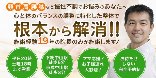 市川市 肩こり頭痛腰痛等の慢性的な症状改善専門整体院
