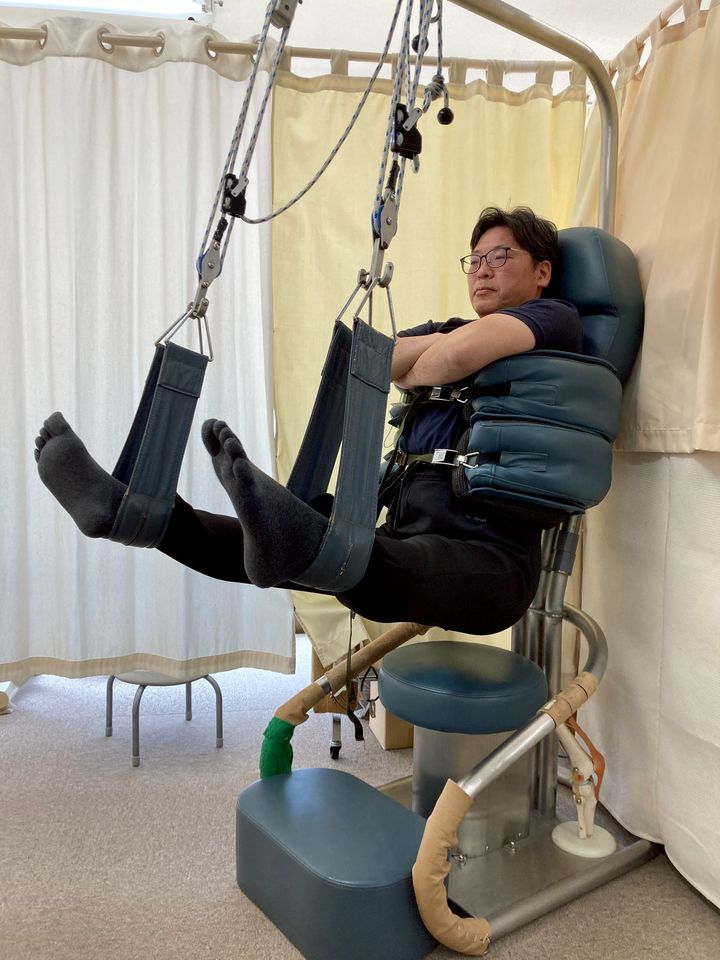 自重を使った腰部の牽引。さらに腰痛に関係するハムストリングや殿筋をしっかりストレッチできます。