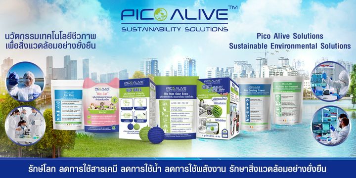 PICO ALIVE ให้บริการแก้ไขปัญหาเรื่องสิ่งแวดล้อมอย่างยั่งยืน นวัตกรรมจุลินทรีย์ พิโก อไลฟ์ สามารถกำจัดกลิ่นเหม็นภายใน 1 นาที ย่อยสลายไขมัน ย่อยสลาย