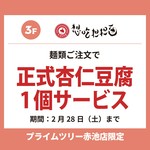 麺類ご注文で、正式杏仁豆腐1個サービス