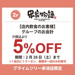 【店内飲食のお客様】グループのお会計(税込)より5%OFF