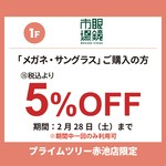 「メガネ・サングラス」ご購入の方 税込より5%OFF