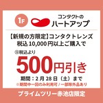 【新規の方限定】コンタクトレンズ10,000円(税込)以上ご購入で税込価格より500円引き