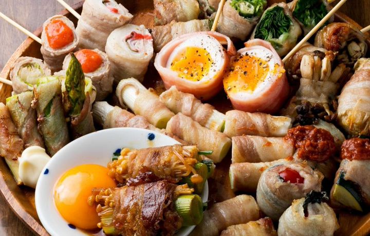 【おススメ!ぐるり全串盛】(¥4010) 5本や8本セットなどもございます♪ 〈季節限定〉(¥280~) 【焼】桜エビと菜の花豚巻き 【焼】タケノコの豚巻き 〈定番串〉(¥200~) 【焼】きのこの豚巻 【焼】牛すき焼巻 【蒸】白菜明太豚巻 【焼/蒸】レタスの豚巻 【焼】トマトとバジル豚巻 【焼】アスパラ豚巻 【焼/蒸】しそ梅肉と大根の豚巻 【焼】レンコンの豚巻き 【焼】アボカドの豚巻き 【焼】半熟たまごベーコン巻 【焼】山芋の豚巻 【焼】トッポギとチーズの豚巻 【焼】ニラチーズ肉巻き 【焼】万能ねぎ豚巻