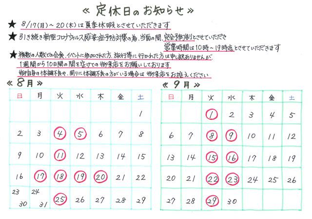 毎週火曜日、第2・第3水曜日は定休