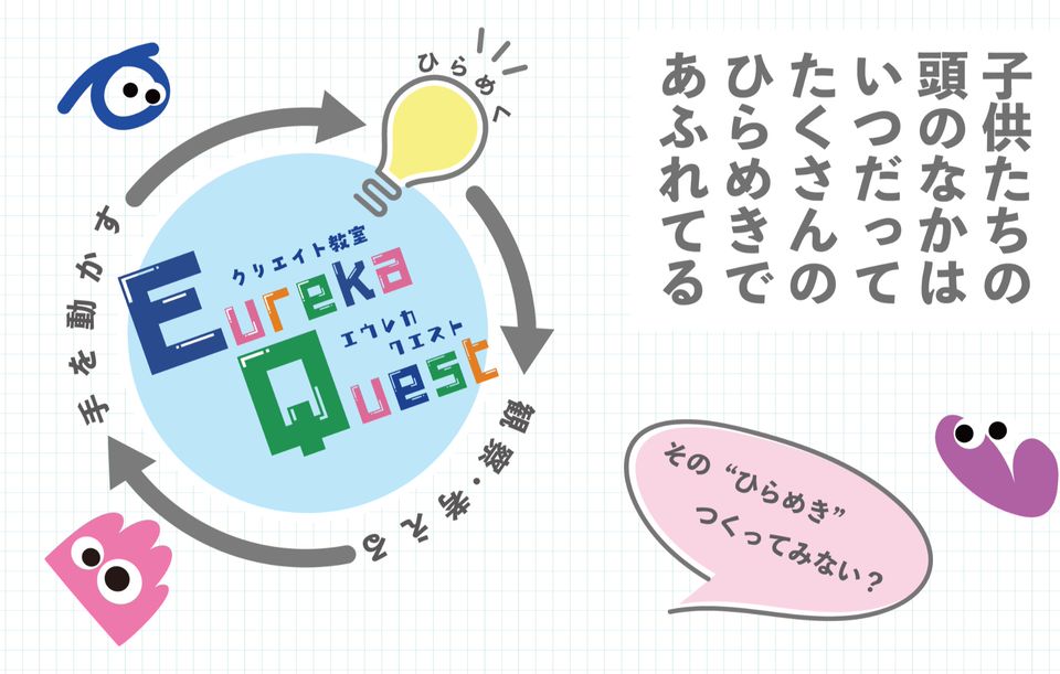Eureka Quest(エウレカ クエスト)は、子供たちからうまれる“ひらめき“を形になるまでとことんお手伝いする教室です。決まったカリキュラムはなく、子供たちが作りたいものを自由に決め、様々な素材や道具を使って思い思いに制作できる場所です。
