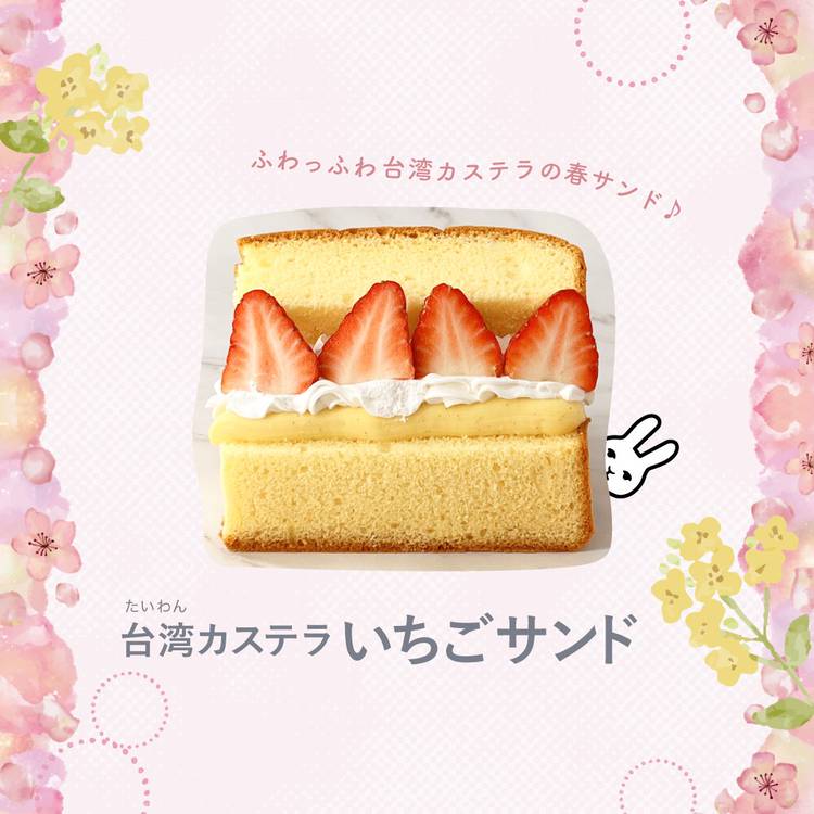 新作登場!【春限定商品】 台湾カステラいちごサンド カネカ農園さんの新鮮な苺を使用した カステラサンドは ホイップとカスタードのWクリーム入り なんとも贅沢なカステラサンドです 食べるだけでも春気分🌷 限定販売ですので、お早めに♪ 【🌸さくらまつり🌸】 3/3(木)〜4/10(日) サンクレールにて(つきとうさぎも) 楽しい春イベント開催中です 税込600円ごとに 1枚スクラッ...