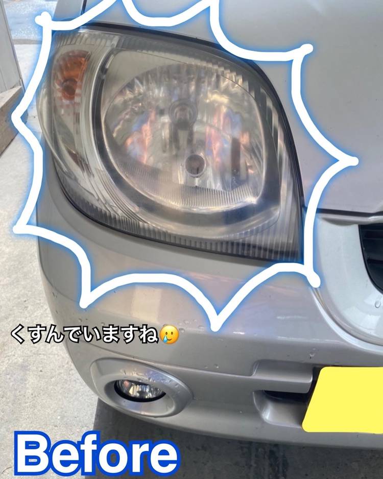 皆様、お待たせいたしました🤗🎉 本日は、「ヘッドライト磨き&コーティングのその後」です🌟 写真1枚目は、 昨日投稿した施行前のものになります🚗🌀 ボディ自体がツヤツヤでも、 このようにヘッドライトがくすんでしまっていては 見た目の印象が、、、残念ですよね😵 これが!なんと! こんなに綺麗ピカピカに生まれ変わりました👼💕 (写真をスライドしてみてください) 耐水ペーパーと...