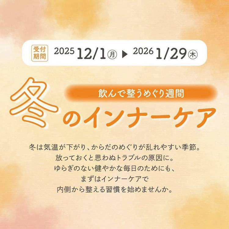 【12/1~1/29】まで 💛🧡冬のインナーケアキャンペーン開催中です💛🧡 インナーケアとは身体の内側からのケア✨✨ お肌はもちろんのこと全身に効果があるので体調面からもサポートしてくれます!! 〇スキンケアを頑張ってるのにイマイチ結果が出ない 〇なんとなくずっと不調が続いている 〇もうワンランク上の肌を目指したい 〇長年の肌悩みから解放されたい など…普段からスキンケアを頑張ってい...