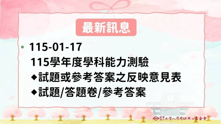 中心簡介:研究改進大學入學制度與技術並辦理大學入學考試。