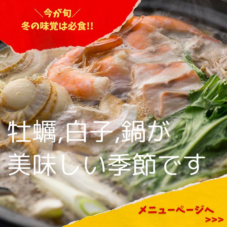 明けましておめでとうございます 昨年は沢山のお客様にお越しいただき、ありがとうございました 2023年も美味しい料理と心を込めたおもてなしでお迎えいたします 新年会は寒い季節にピッタリの鍋を囲んで乾杯 鯛しゃぶ・寄せ鍋・鶏鍋・豚しゃぶから選べる鍋に、串焼きやお造りなどが付いた、飲み放題付コース4,200円~をご用意しております ▼詳細・ご予約はこちら https://r...