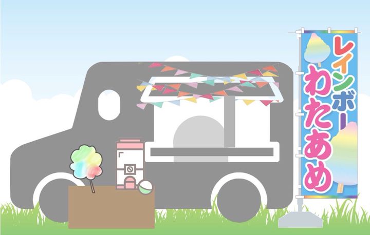 いま話題のレインボーでカラフルなわたあめのキッチンカーです!