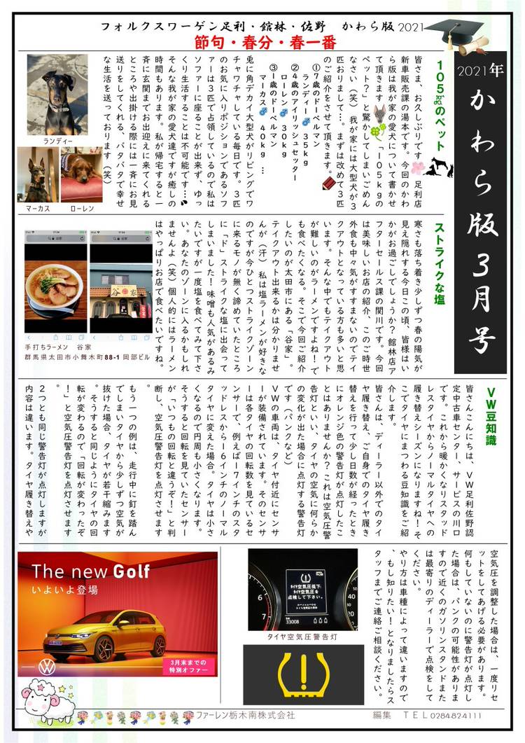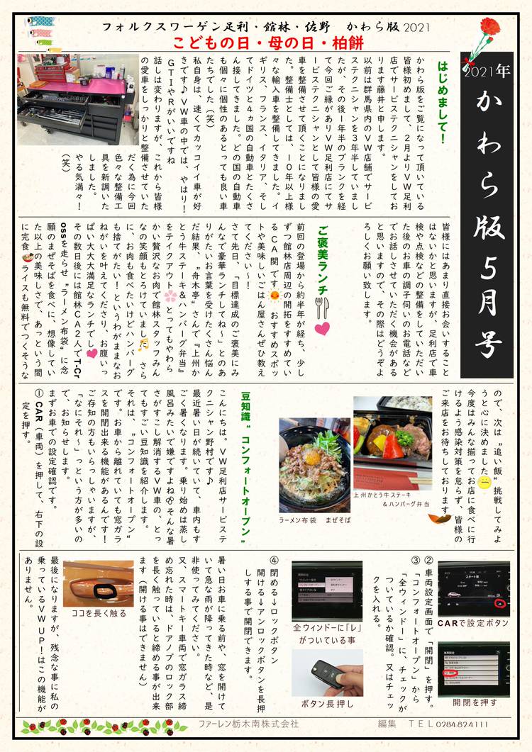 \こんにちは!フォルクスワーゲン足利です/ 8月のかわら版は、ついに壬生に大型スーパーが初出店隠れ家的なグルメリポートなど一度は行ってみたい情報を掲載してます 店舗営業は8月12日~17日まで夏季休業とさせて頂きます。 ご不便をお掛け致しますが、ご了承ください。 緊急の場合には下記の連絡先までご連絡ください。 緊急連絡先(24時間受付·通話無料) ◼️フォルクスワーゲン カスタマ...