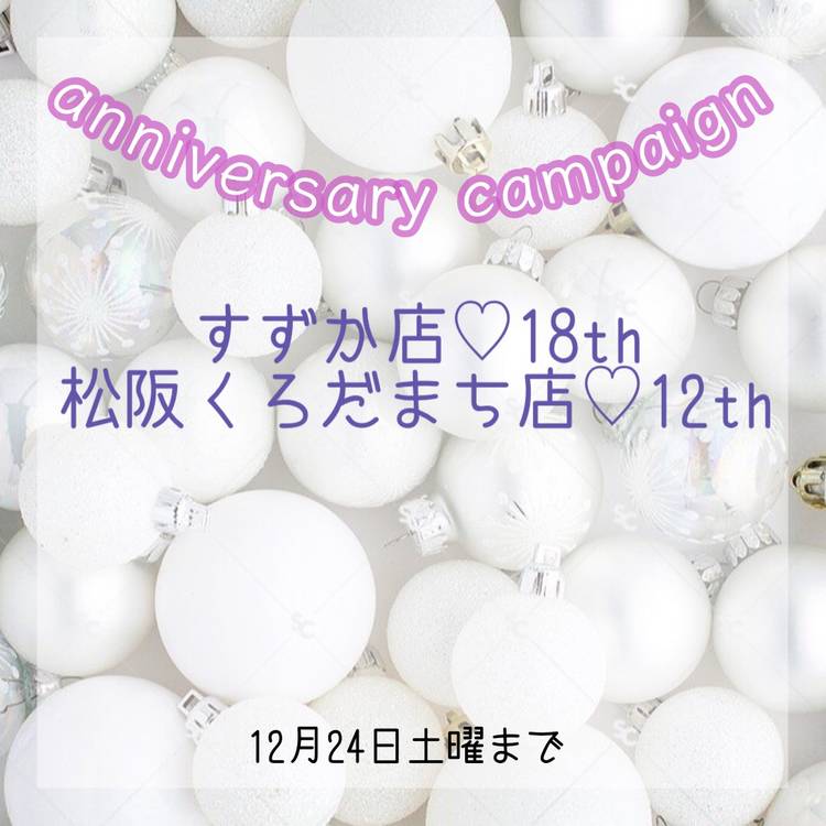 AnniversaryCampaign中! 鈴鹿店20周年!! 松阪くろだまち店14周年! ありがとうの気持ちをこめて 恒例の ジェルネイル盛り放題 6,600円! ※現金払い価格です。 ※キャッシュレス決済価格は6,900円