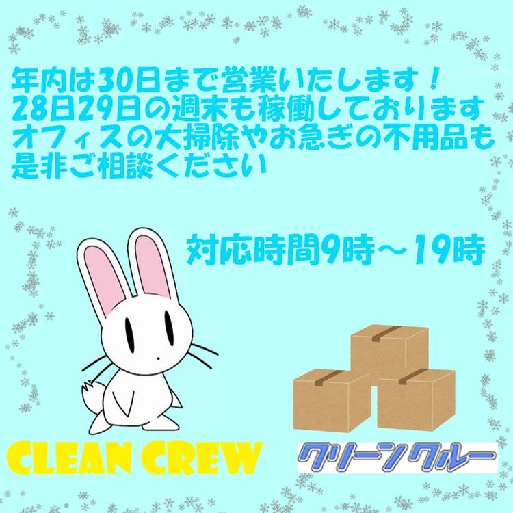 あけましておめでとうございます。 クリーンクルーでございます。 本年もよろしくお願いいたします。 新年の営業は1/5 AM9時より開始いたします。 本年もオフィス・店舗・倉庫などの不用品でお困りの際は是非ご相談ください! タイトなスケジュールでも極力間に合う様、提案させていただきます! ※1/4までの期間もWEBお問い合わせやカレンダー予約は受付しております。