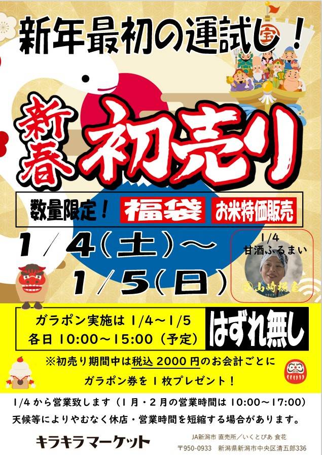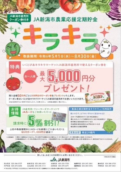 #キラキラマーケット #国消国産 #キャンペーン #直売所 『JAグループ新潟 買って応援!JA農産物直売所キャンペーン』のお知らせ! JAグループ新潟では県内のJA直売所でお買物をされた方を対象としたキャンペーンを実施します! 〇期間:7月6日(土)~10月6日(日) 〇対象:登録JA直売所2店舗以上で合計3500円以上のお買い物したレシー トが必要になります。 〇応募方法:店頭応募箱の他...
