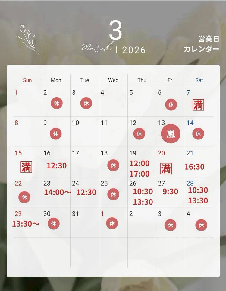 第2日曜日定休日、他不定休。最終受付18時