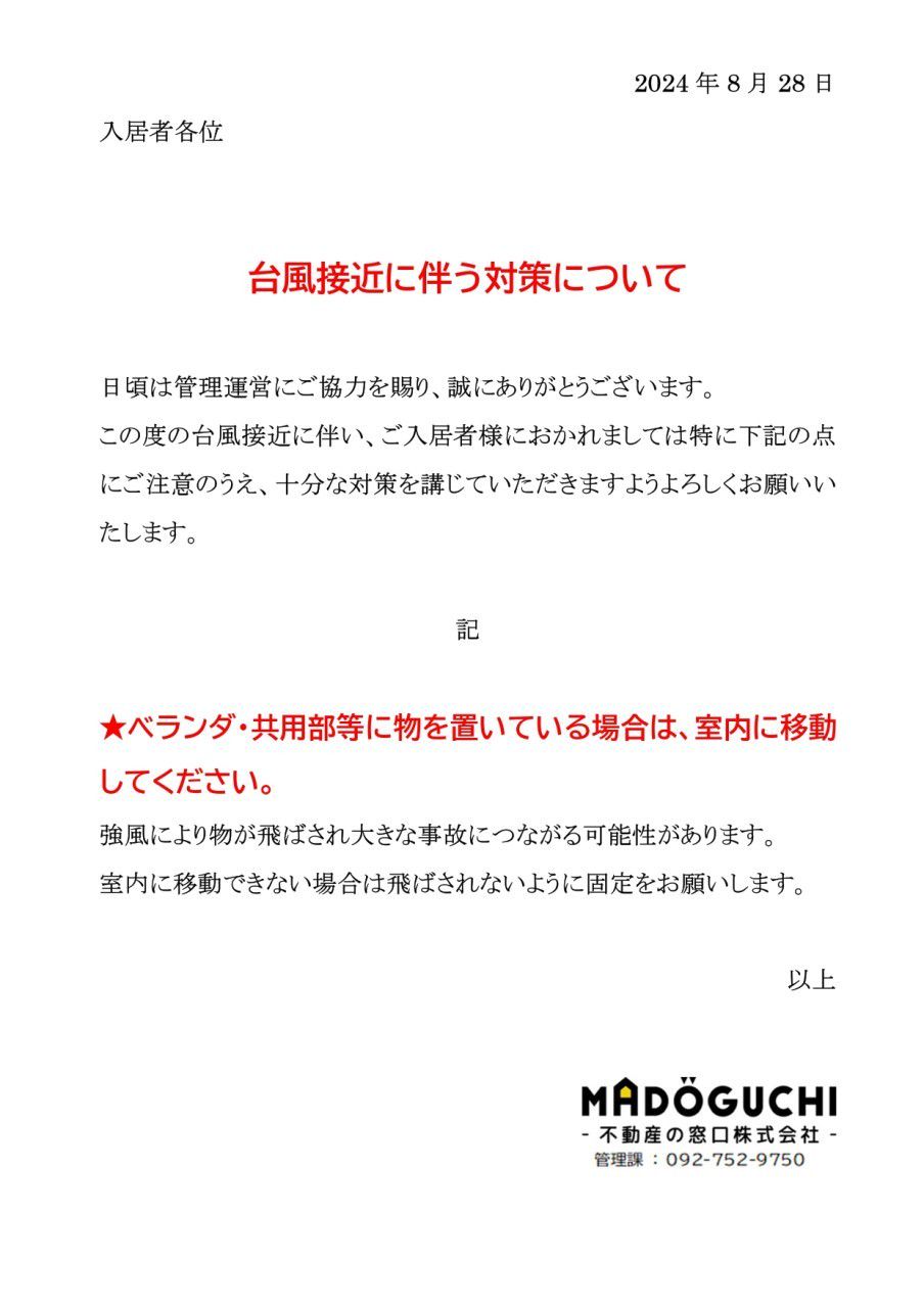 不動産の窓口の管理物件にお住まいの入居者様用LINEです!
