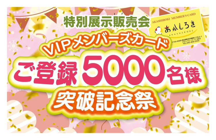 あかしろきです 明日2/16(木)~2/20(月)まで『VIPメンバーズカードご登録5000名様突破記念祭』を開催