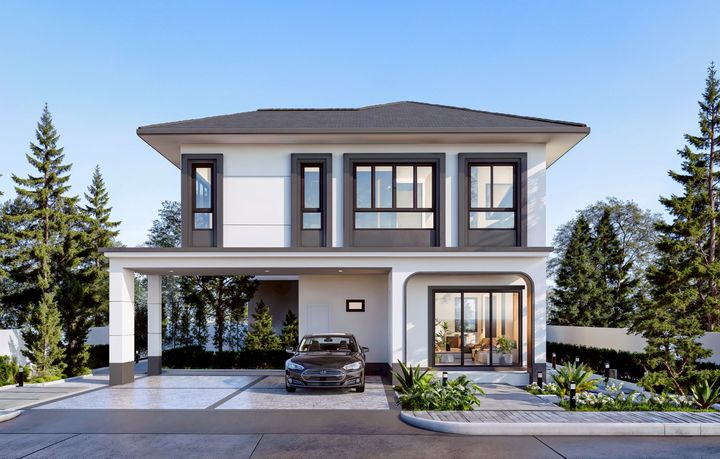 4 ห้องนอน 2 ห้องน้ำ 1ห้องอเนกประสงค์ 3 ที่จอดรถ รายละเอียด พื้นที่เริ่มต้น 50 ตรวบ้านแฝดไสตล์บ้านเดี่ยว พื้นที่ใช้สอย กว้างถึง 120 ตรม