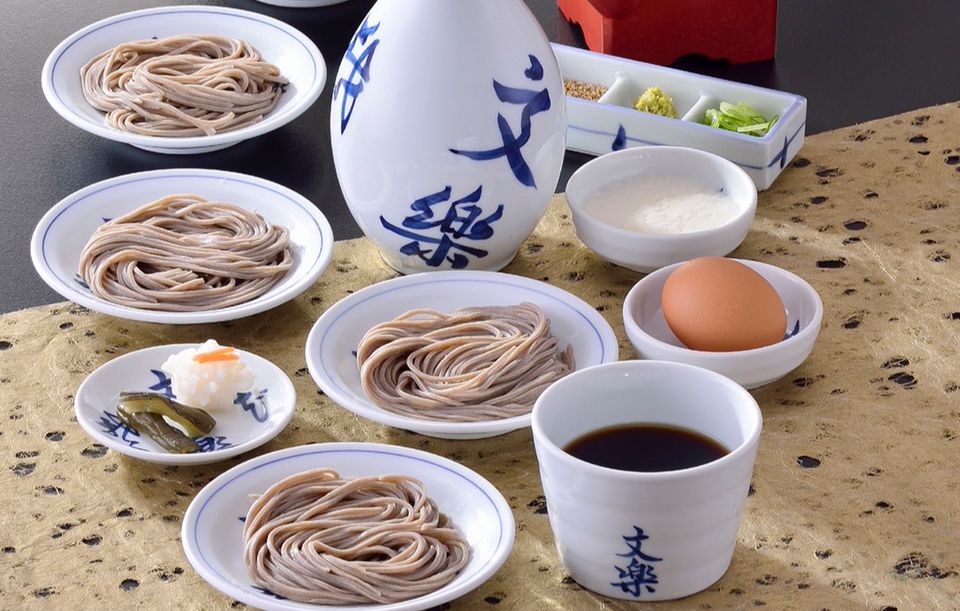 皿そば文楽砥堀店です。自家製麺の皿そばと自家製出汁が自慢です