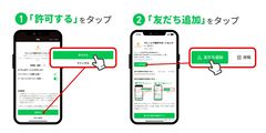お使いのスマホによって「許可する」というメッセージが出る場合があります。その後「追加」ボタンを押して友だち追加してください。