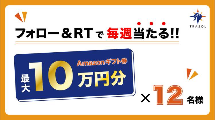 最大10万円分のAmazonギフト券を5週連続で12名様にプレゼント ただいま、トラソルの公式Twitterアカウントにてフォロー&リツイートキャンペーンを開催中 こんにちは なにかと出費の多い年末年始。。。 とくに今年はコロナで大変な思いをしている方々もたくさんいらっしゃいますよね。。。 そんな皆様を微力ながら応援したい…コロナに負けず、幸せな気持ちで年末年始を...