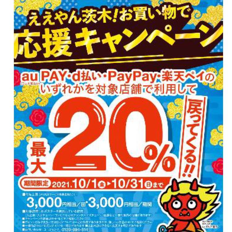茨木市買い物キャンペーン 12/1〜はauPAY・楽天Payが対象です! auPAYと楽天Payの二刀流さんも大歓迎〜🎉