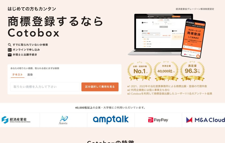 オンライン商標登録サービス コトボックス