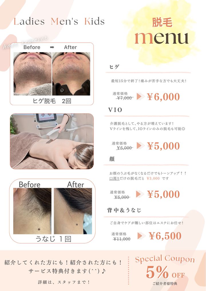 夏になる前の必須ケア!脱毛!!今から脱毛を始めると夏に間に合います☺️⭐️日焼けした肌には、脱毛が出来ません😣また、脱毛は1回で完了しません⚠️早め早めに脱毛する事により、夏にツルスベ肌GET🎵脱毛が初めてで不安‥.と言う方や、金額だけ知りたい!などなどLINEからお気軽に、お問い合わせ下さい😊