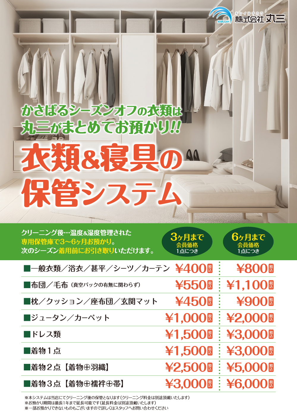 大切な衣類と寝具を長期間お預かり