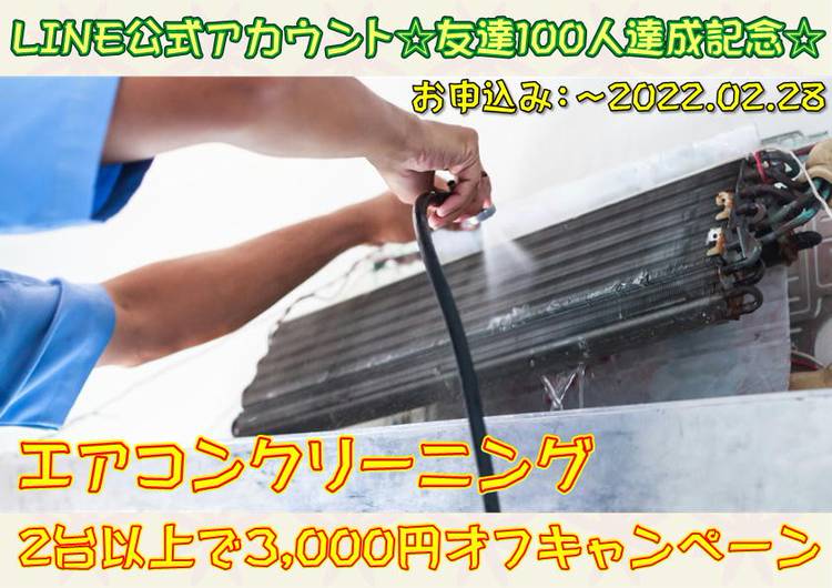 奈良県のハウスクリーニング・エアコンクリーニング専門店、ハウスクリーニングやまとです この度、LINE公式アカウントのともだちが100人を突破致しました 皆様ご登録ありがとうございます(*≧∇≦*) 記念と致しまして、エアコンクリーニングのキャンペーンを開催させて頂きます! エアコンクリーニングを2台以上同時にご依頼頂くことで、合計金額より3,000円オフさせて頂きます 2台...