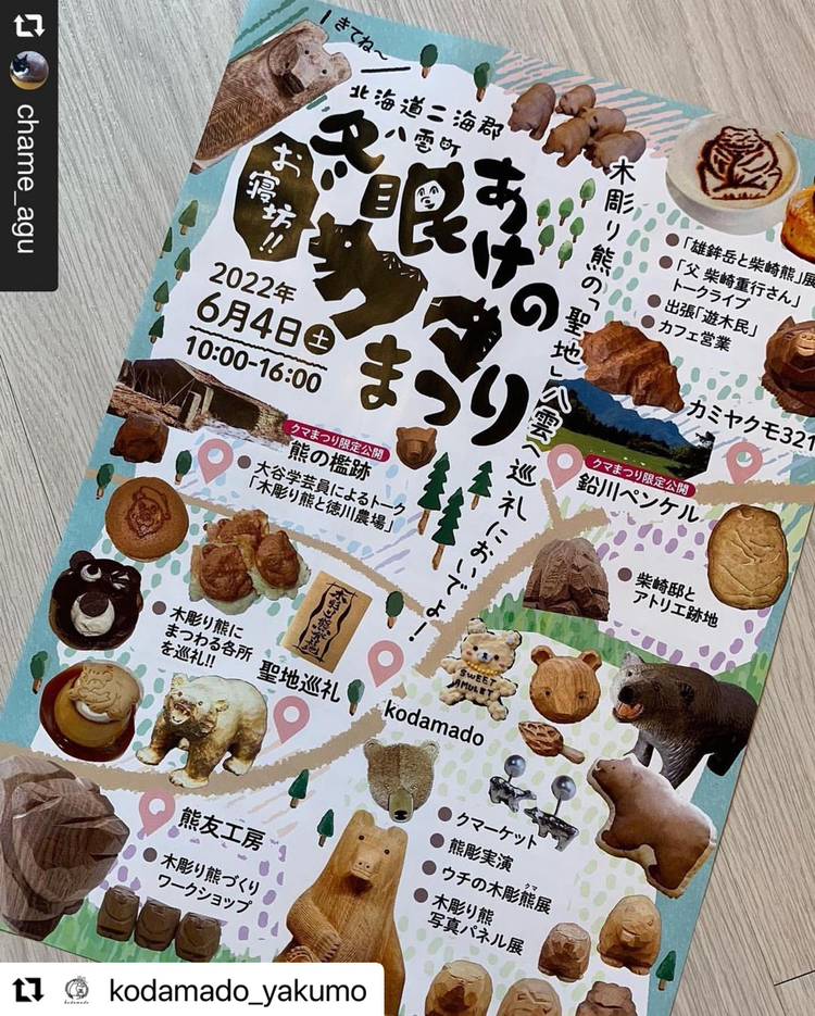 \(^ω^)/号外ー!号外ー!\(^ω^)/ #kodamado チームが凄いものを作っちゃいました! その名も#八雲の熊彫 裏面#御朱熊印 (ごしゅくまいん) #beamsjapan での#八雲の木彫り熊 のポップアップに合わせて、八雲の木彫り熊の歴史や、インタビューなどが載っている冊子を作りました! 裏面には、木彫り熊がある店舗にご協力いただき、八雲に足を運びたくなるような工夫として、...